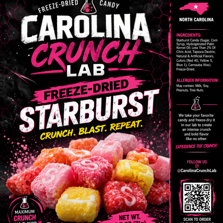 At Carolina Crunch Lab, we craft uniquely crunchy freeze-dried candy in North Carolina. Each batch is made with care, blending classic sweets with exciting new textures and tastes for candy lovers seeking flavor and fun.